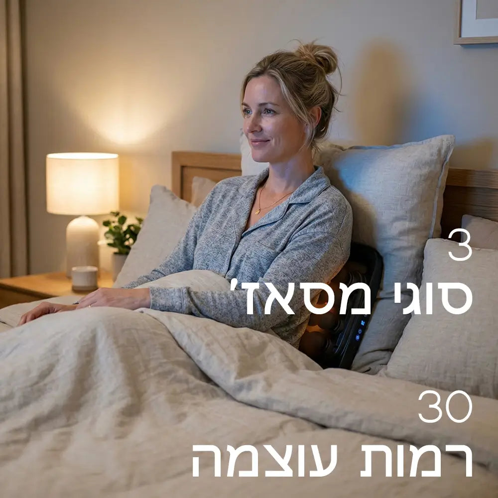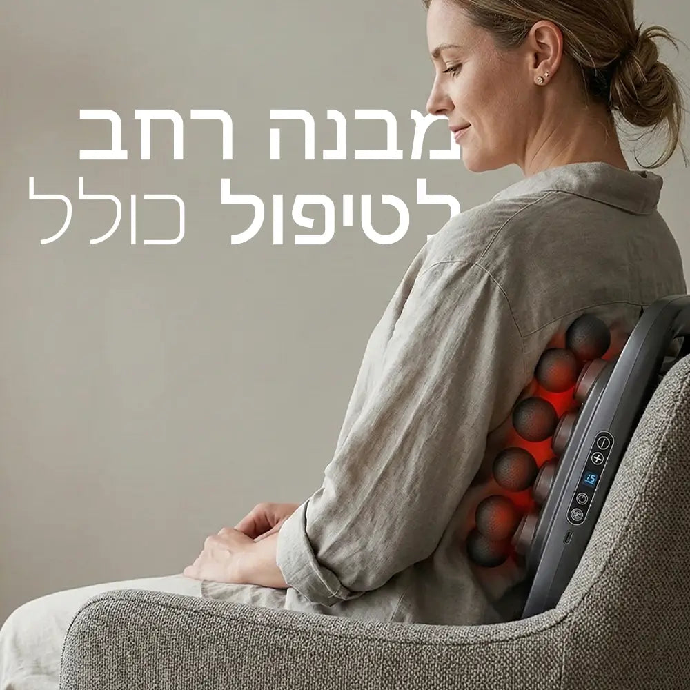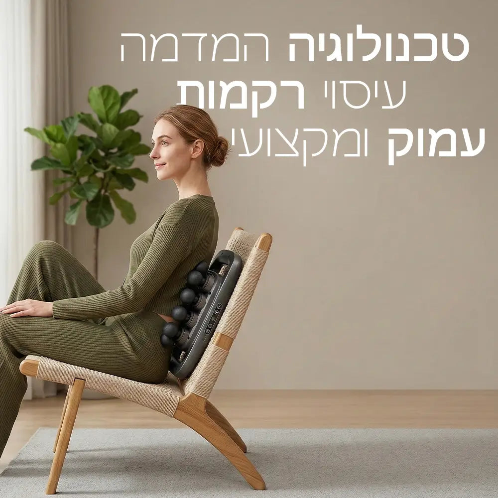 מכשיר העיסוי החכם שלנו עוצב כדי להעניק לכם רגע של שקט בתוך השגרה, עם טכנולוגיית פולסים מדויקת שחודרת עמוק אל מוקדי המתח ומשחררת את שרירי הגב על מנת לסיים את היום בקלילות ורוגע